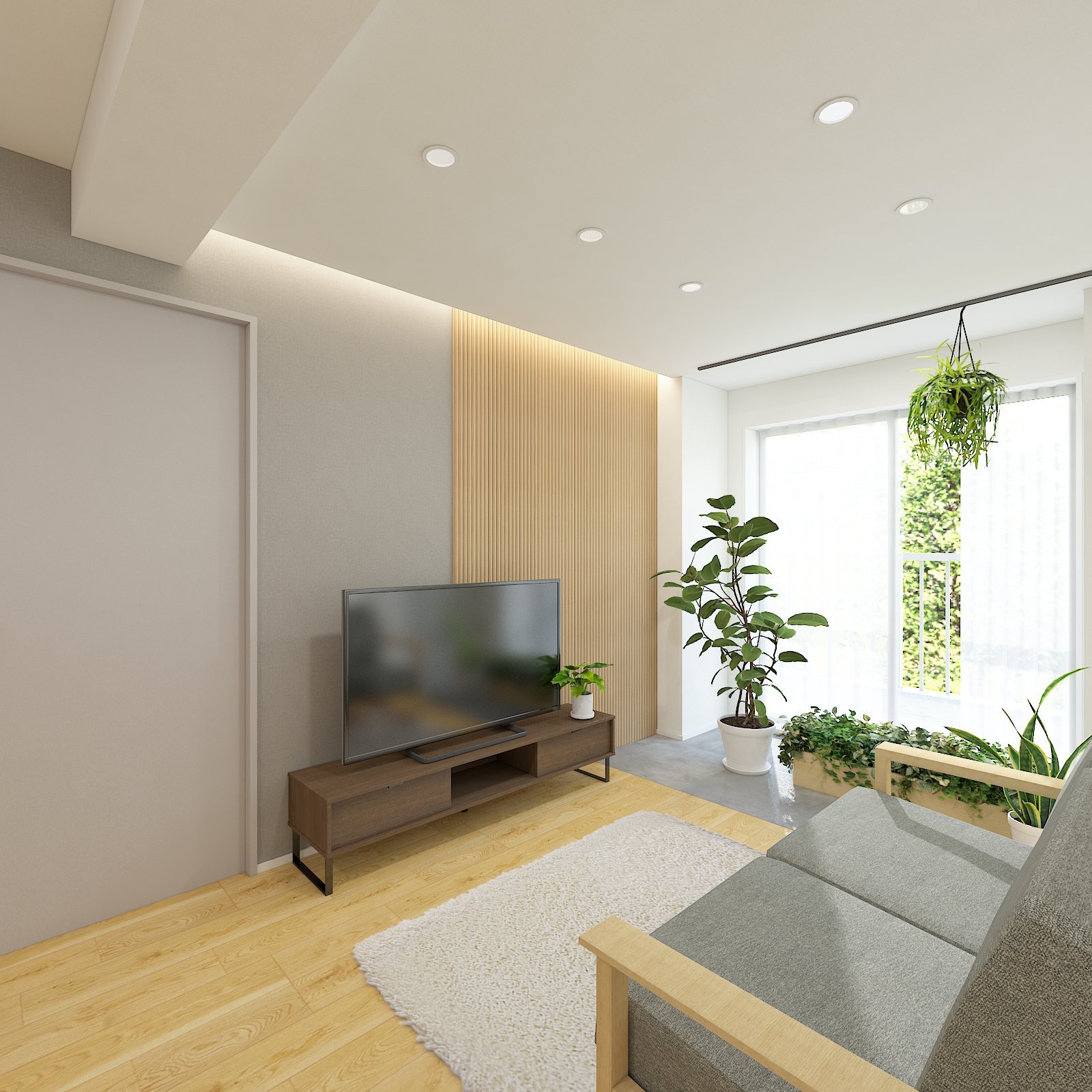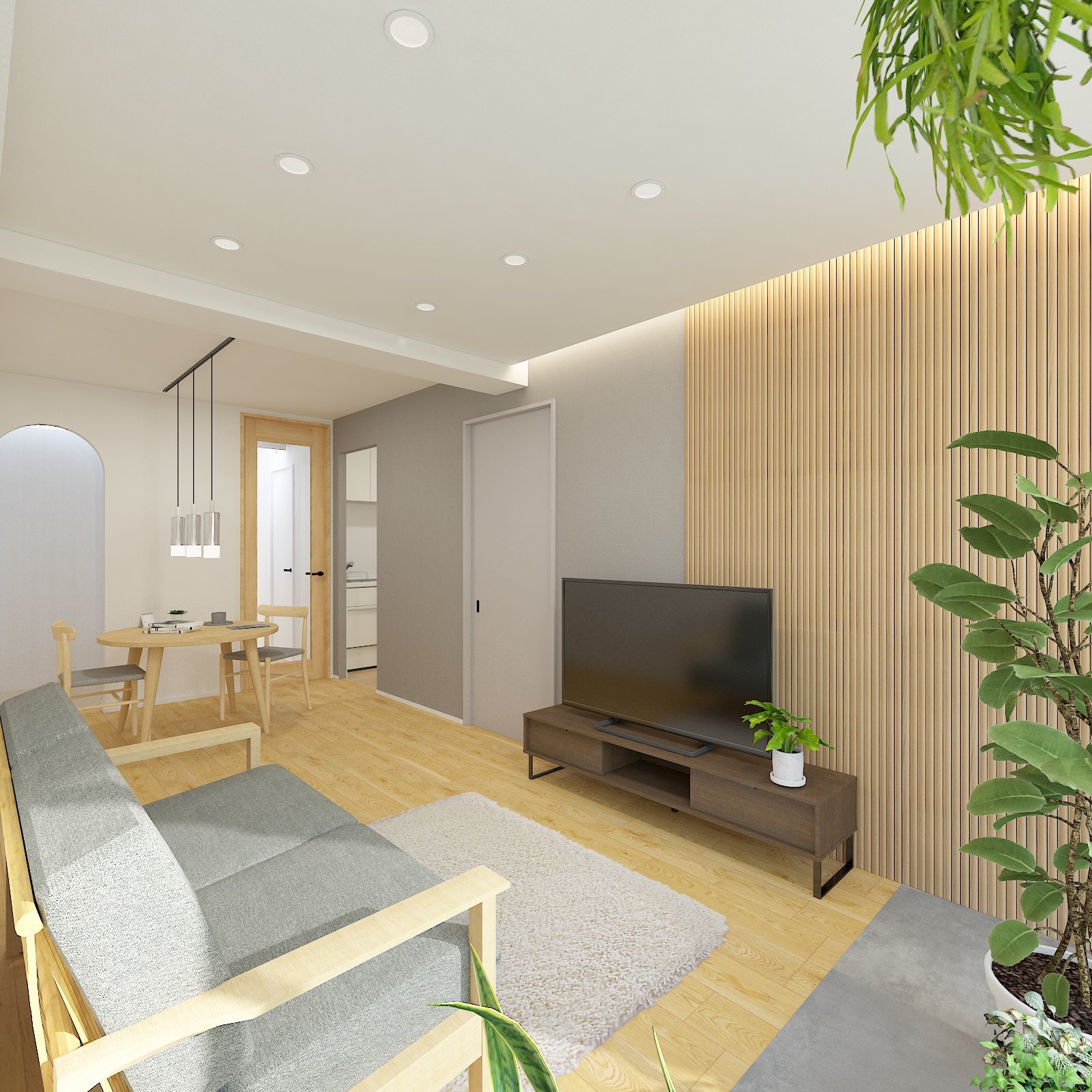 木素材を使用したアクセントウォールがお部屋の顔になりそうです!