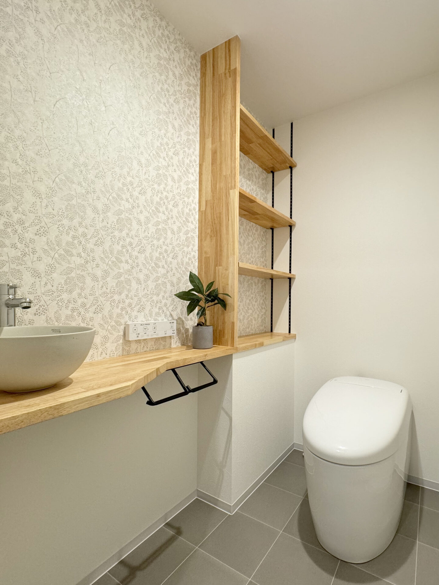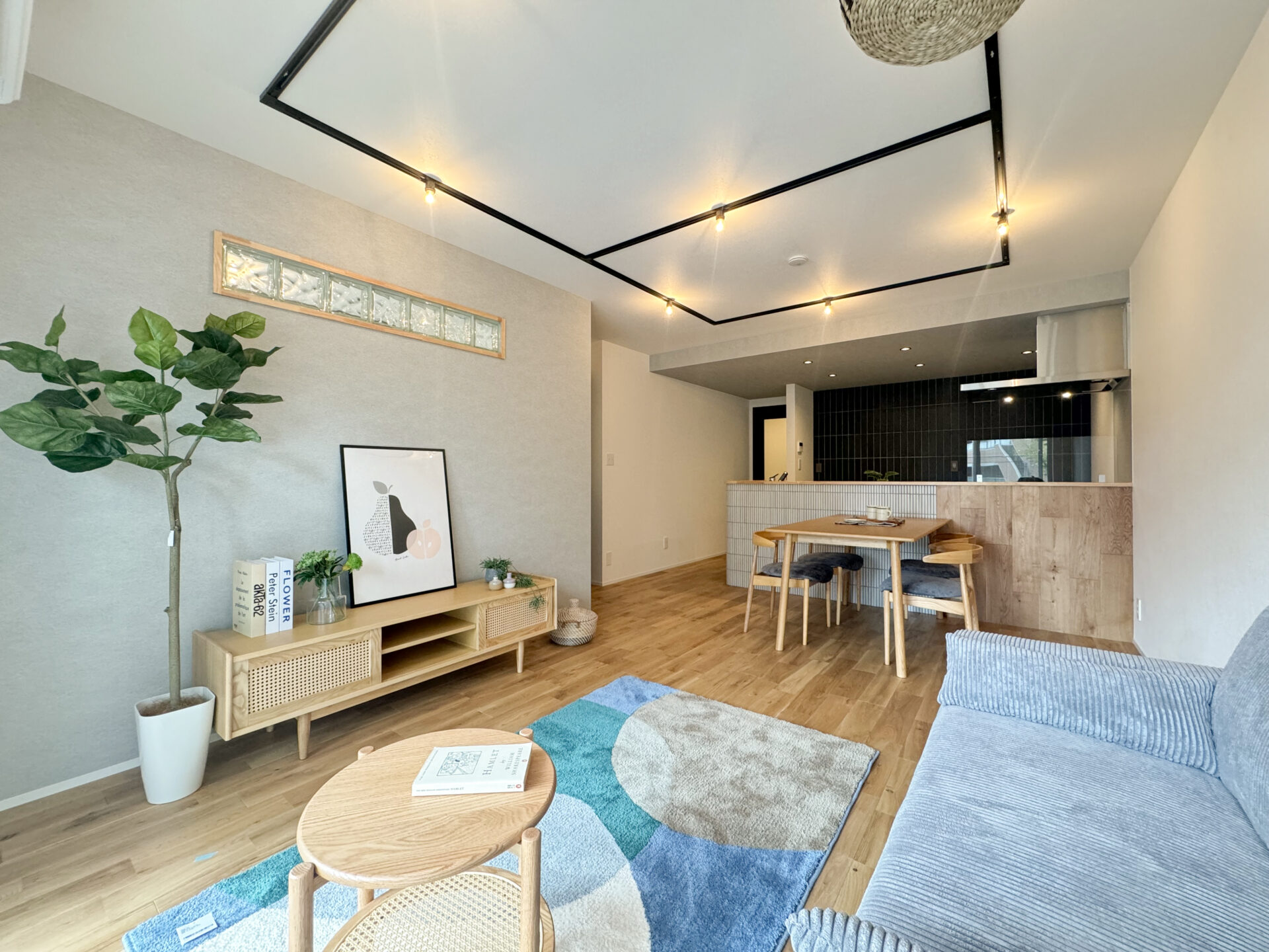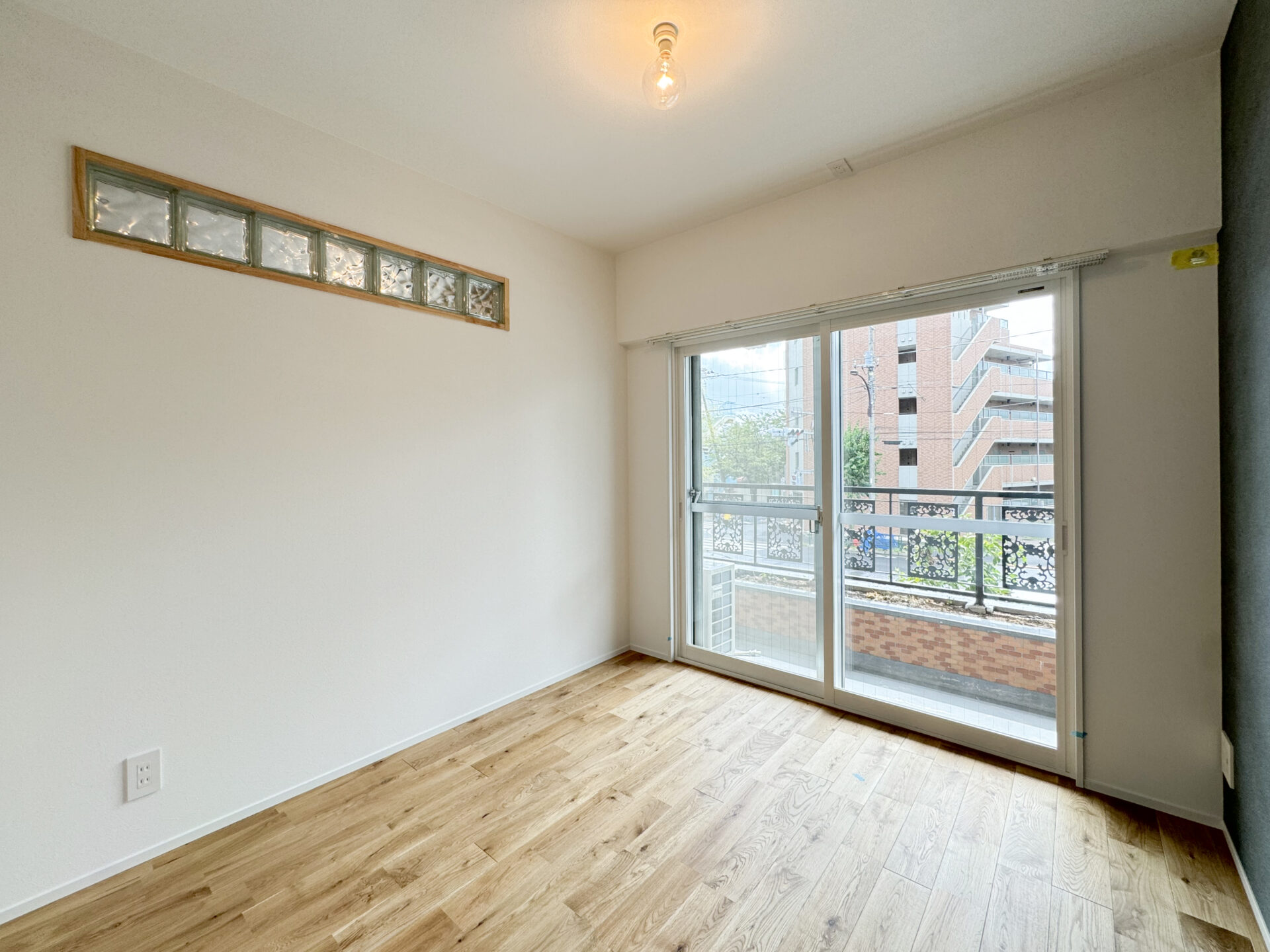 内装 シンプルな素材を集めて。 主張の少ない素材を組み合わせてシンプルな空間デザインを。 木とタイルを合わせて。 お部屋の主役となるキッチンの腰壁は、白いタイルと天然木のツートーン素材でデザイン。 ガラスブロックの室内窓。 LDKに隣接するお部屋側からの眺め。ガラスブロックがあるだけで圧迫感を軽減することができます。さりげない優秀リノベアイテム。 アクセントクロスを。 寝室のアクセントクロスは落ち着いたカラーをセレクト。コーナーのスペースを上手に利用してクローゼットを。 ウッディな玄関。 玄関の壁は天然木のアクセントウォールに。「ただいま」の瞬間に木の良い香りが迎えてくれます。大容量のシューズが収納できるストレージも魅力的。 デザインも使い勝手の良さも。 可動式の造作の棚で使いやすい収納を設け、洗面スペースはタイルとアクセントクロスでデザイン。照明にもちょっと拘りました。 トイレだって抜かりなく。 こだわったトイレスペース。手洗いボウルとアクセントウォールのトーンを合わせてコーディネート。造作の棚もあるととっても便利。